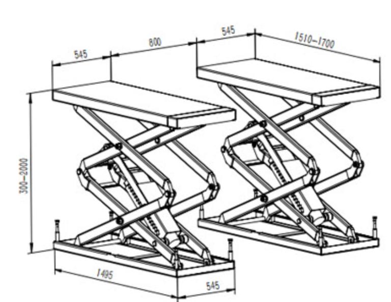 + Chiều dài bàn nâng: 1510 - 1700 mm