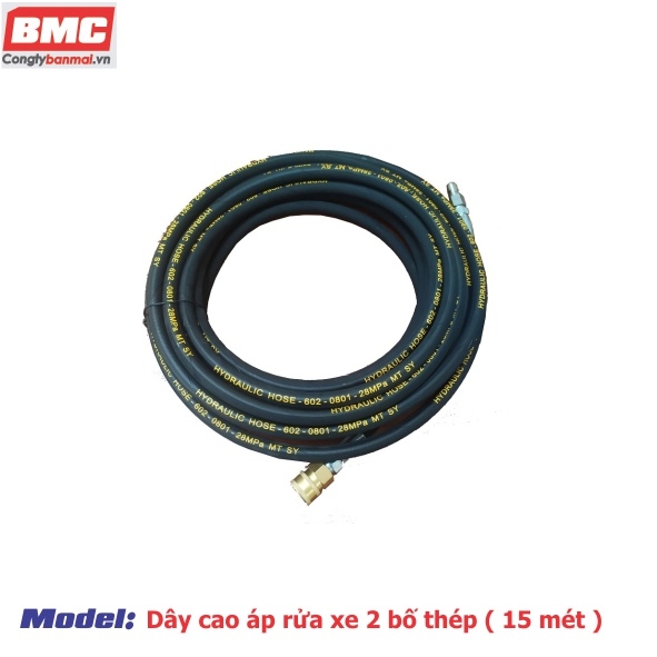 Dây rửa xe áp lực cao 2 bố thép 15 mét được làm từ chất liệu cao su có 2 bố thép với chiều dài 15 mét, với thiết kế 2 lớp bố thép, mang đến độ bền cao và độ tin cậy đáng kể.
