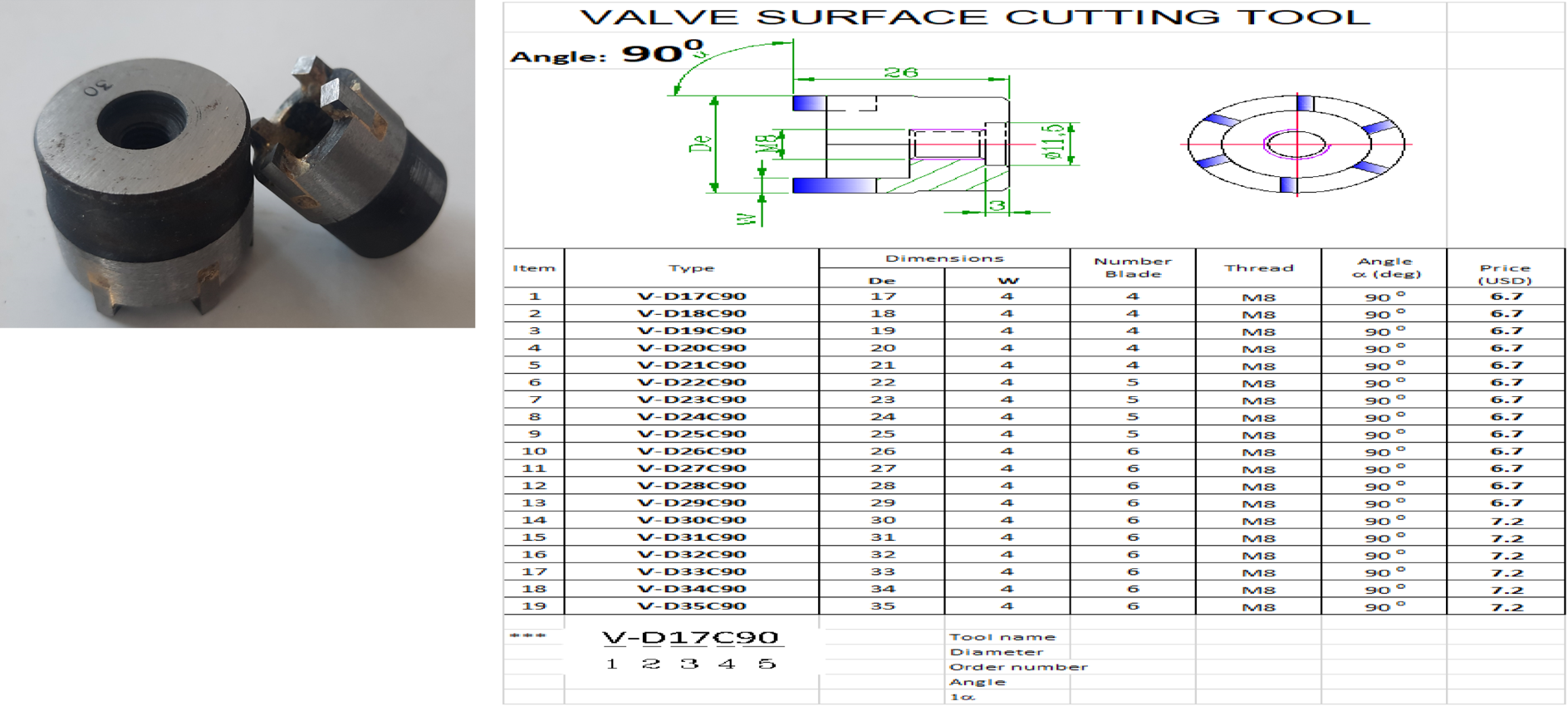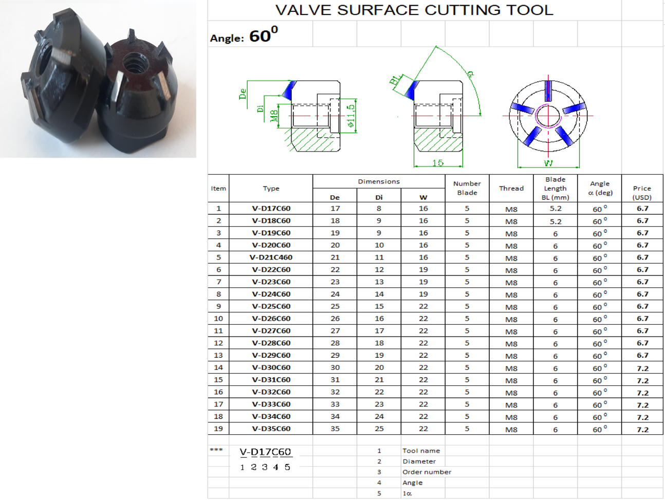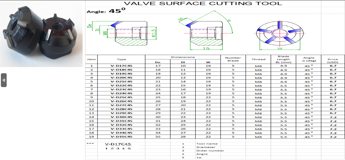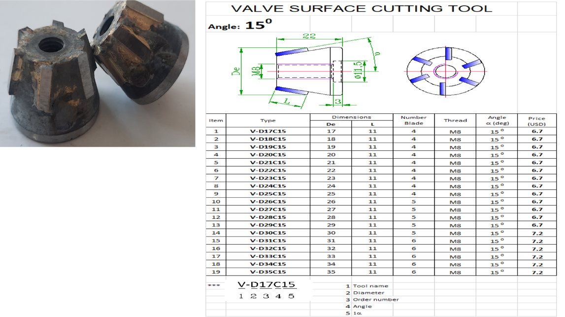 + Lã mặt 30-60 độ(so với thân Supap)