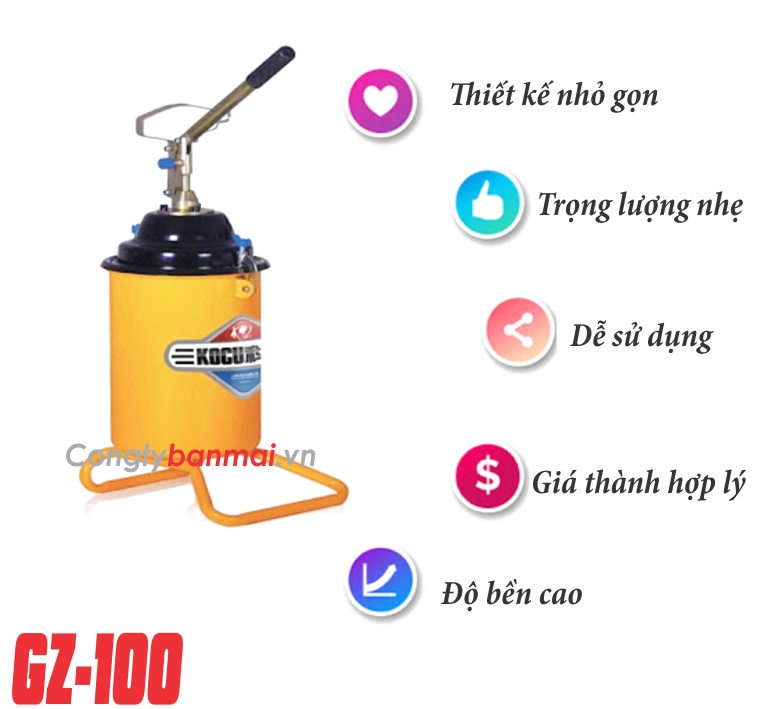 Với dung tích thùng chứa lớn và áp lực mạnh mẽ, máy bơm mỡ Kocu GZ-6S là lựa chọn phù hợp cho các doanh nghiệp vừa và nhỏ có nhu cầu bảo dưỡng thường xuyên.