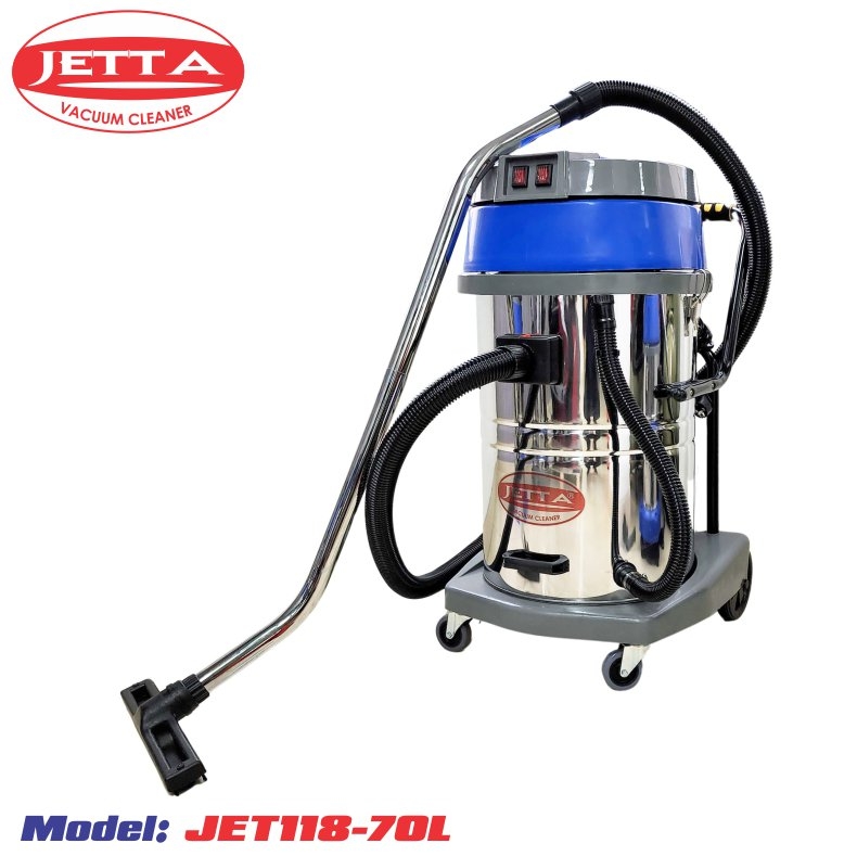 - Máy hút bụi công nghiệp 70 lít JETTA JET118-70L sử dụng động cơ 3000W, giúp xử lý nhanh chóng cả bụi khô và chất lỏng.