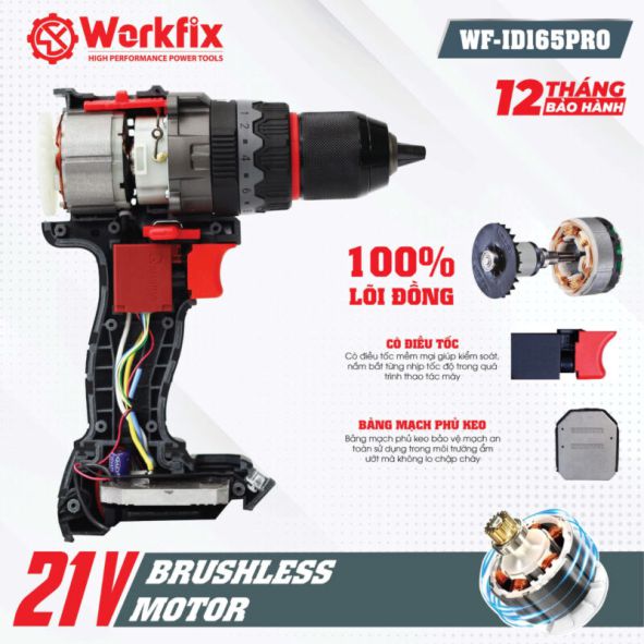 Máy khoan cầm tay Pin Workfix WF-ID165PRO là sự hội tụ của công nghệ đỉnh cao, mang lại hiệu suất làm việc và sự an toàn vượt trội.