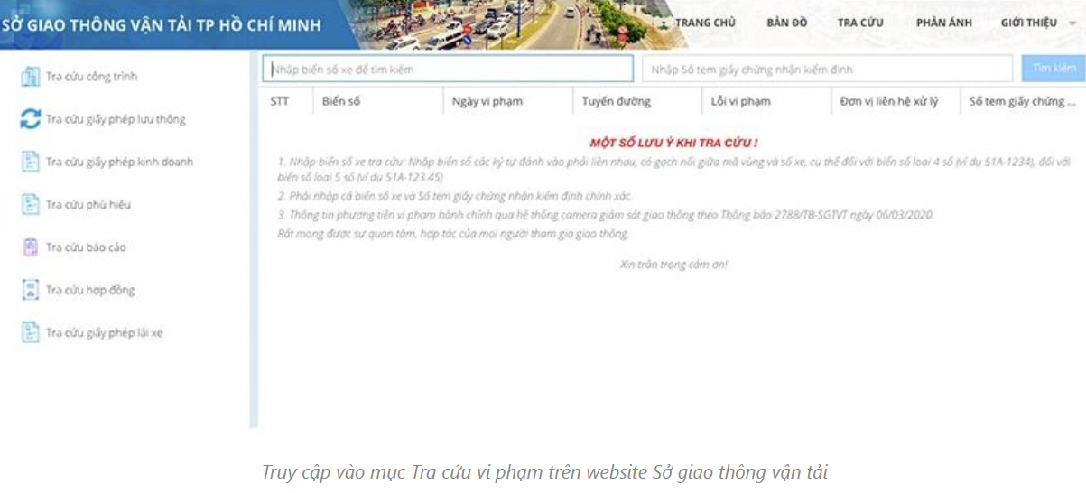 Hướng dẫn tra cứu phạt nguội trên webiste Sở Giao thông vận tải TP. Hồ Chí Minh:
