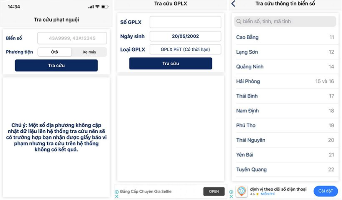 Nhiều ứng dụng trên nền tảng Android và IOS được thiết kế để giúp người dùng tra cứu phạt nguội ô tô. Các ứng dụng này bao gồm: Tra cứu phạt nguội toàn quốc, Tra cứu phạt nguội, Tra phạt nguội, Tra cứu phạt nguội Ô tô - xe máy... Người dùng có thể tải các ứng dụng này từ CH Play (đối với điện thoại Android) hoặc Apple Store (đối với điện thoại IOS).