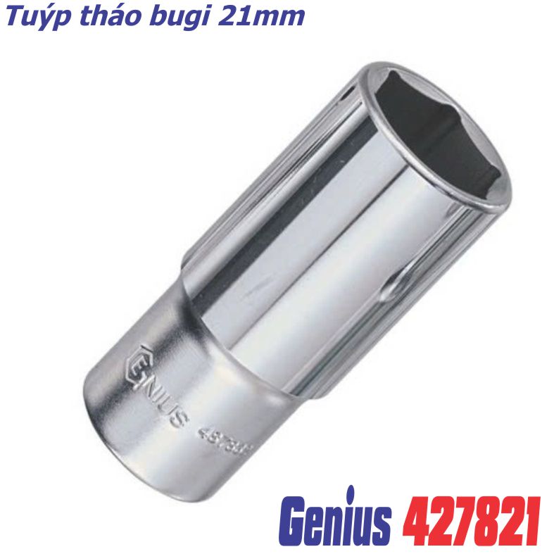Tuýp tháo bugi 1/2 inch 21mm Genius 427821 hay còn gọi là Khẩu tuýp tháo bugi 1/2 inch 21mm Genius 427821 là dụng cụ chuyên dụng dùng để tháo lắp bugi trên các loại động cơ ô tô, xe máy và thiết bị cơ giới. Sản phẩm được thiết kế với kích thước tiêu chuẩn 21mm – phù hợp với đa số các loại bugi hiện nay.
